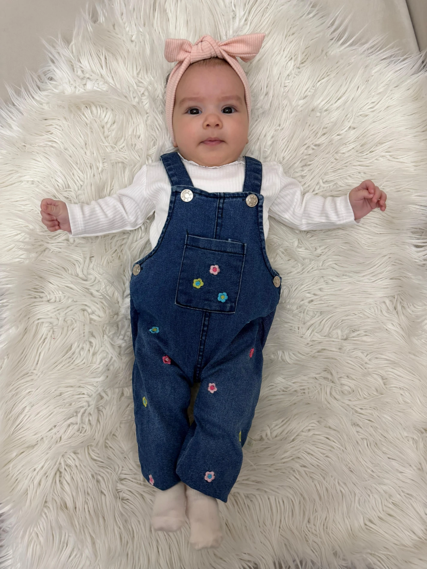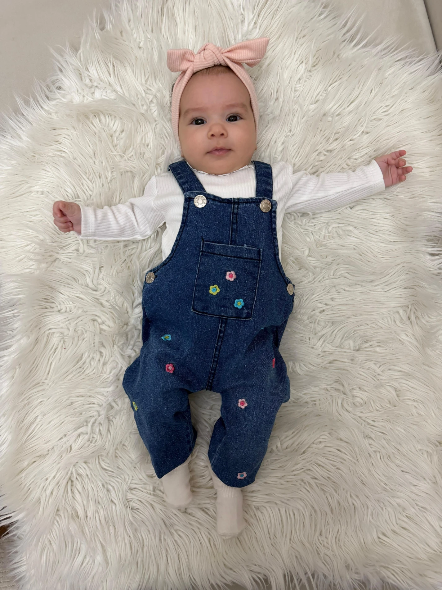 Çiçek Desenli Denim Salopet & Body Takımı