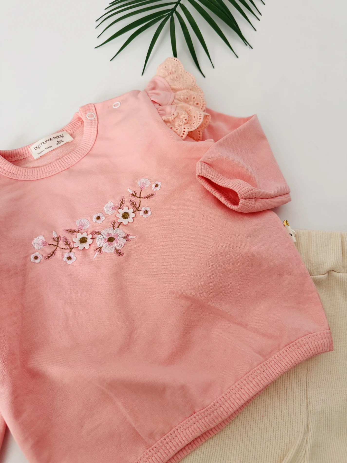 Çiçek nakışli omuzları güpürlü 2 li takım