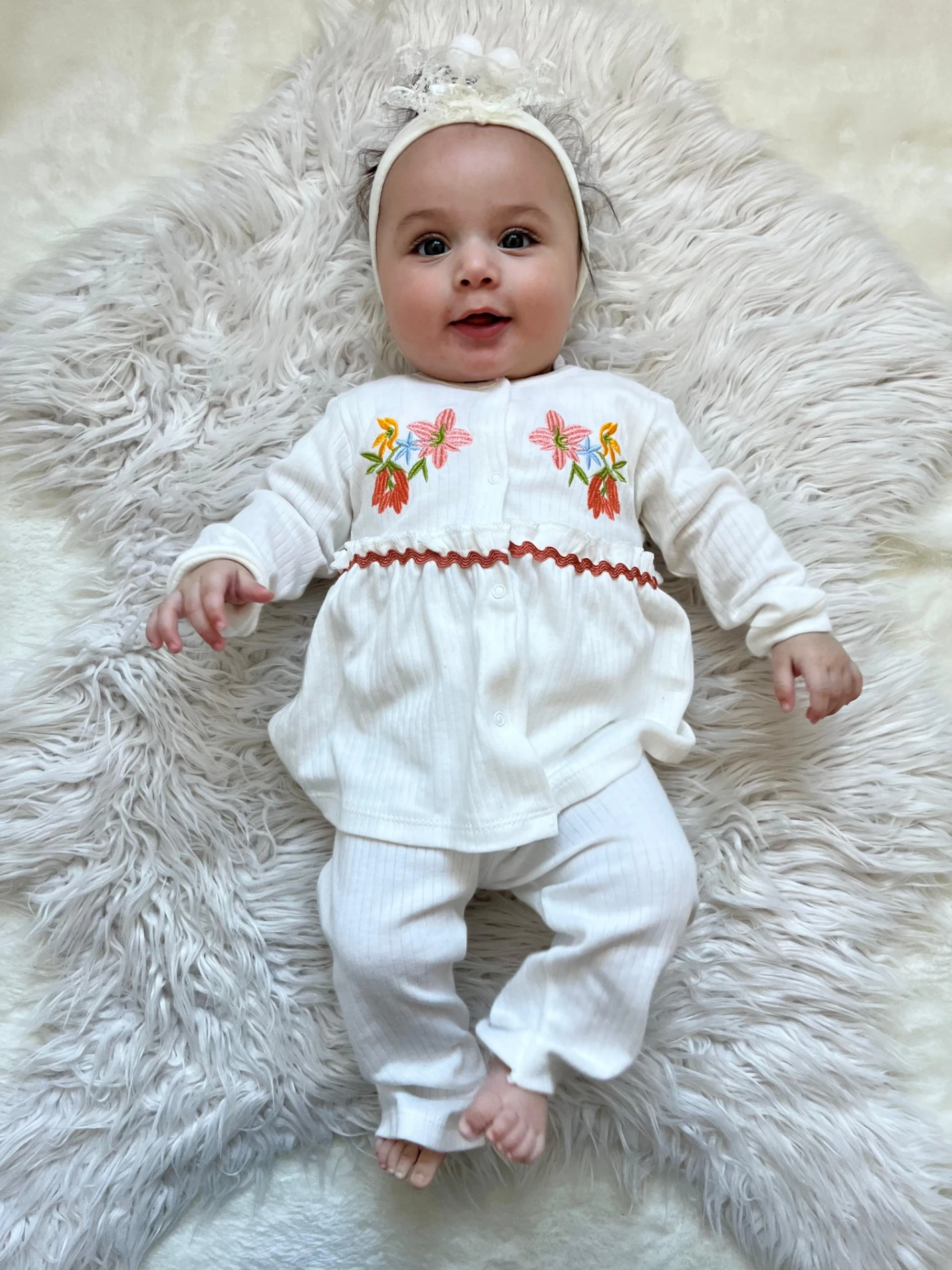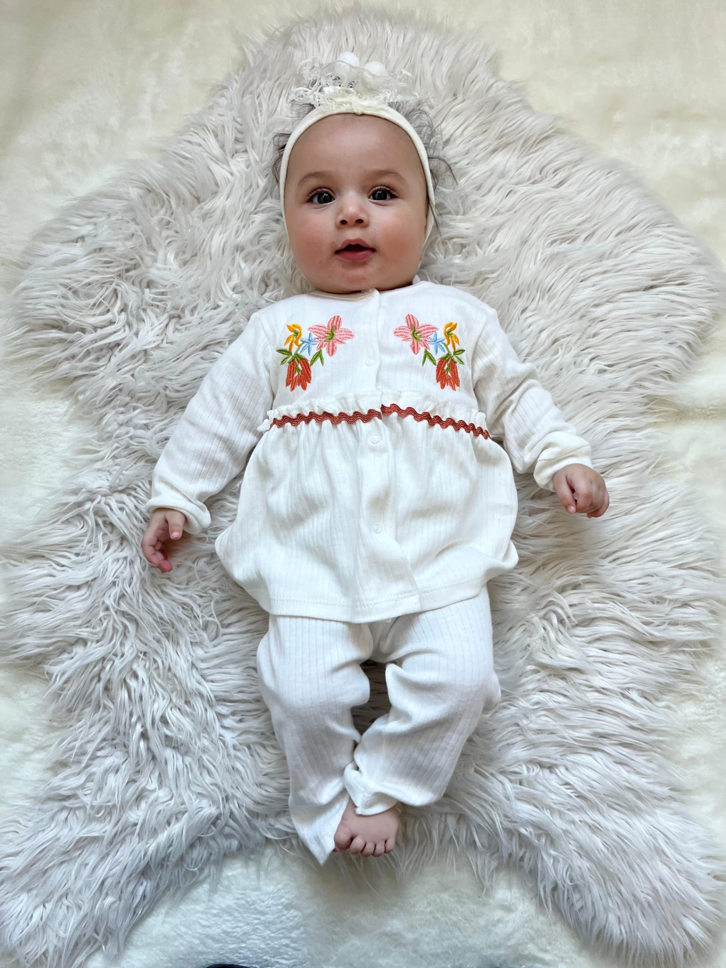 Çiçek nakışlı önden çıtçıtlı 2li takım