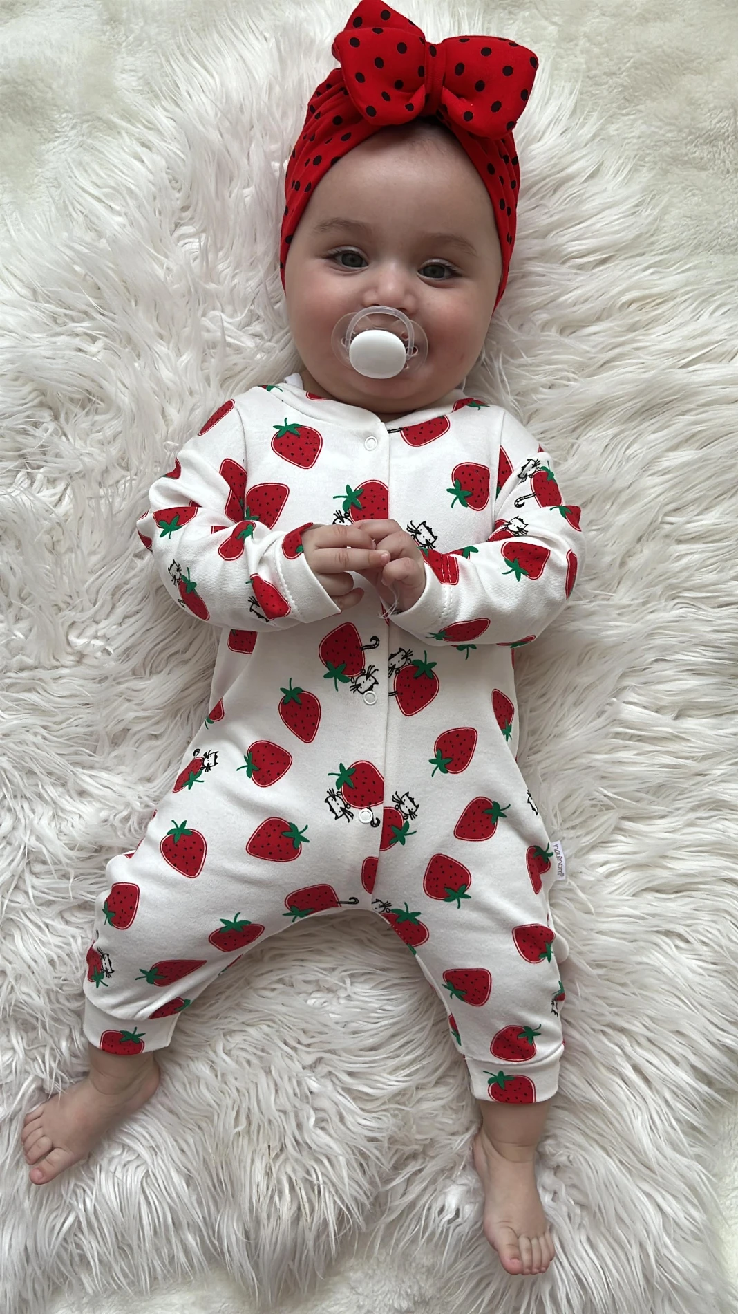Çilek desenli bebe tulumu beyaz