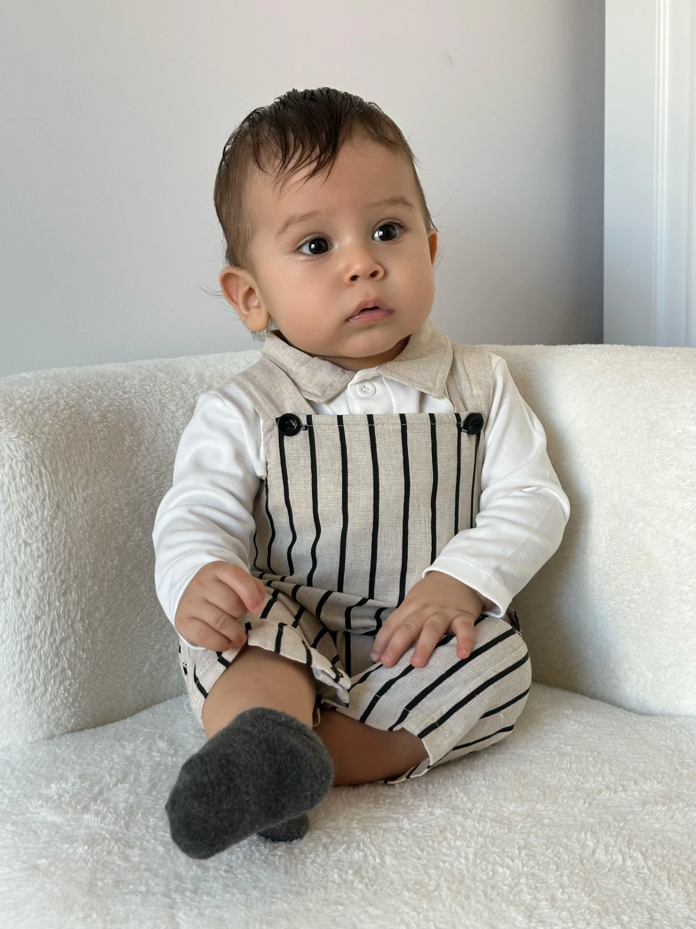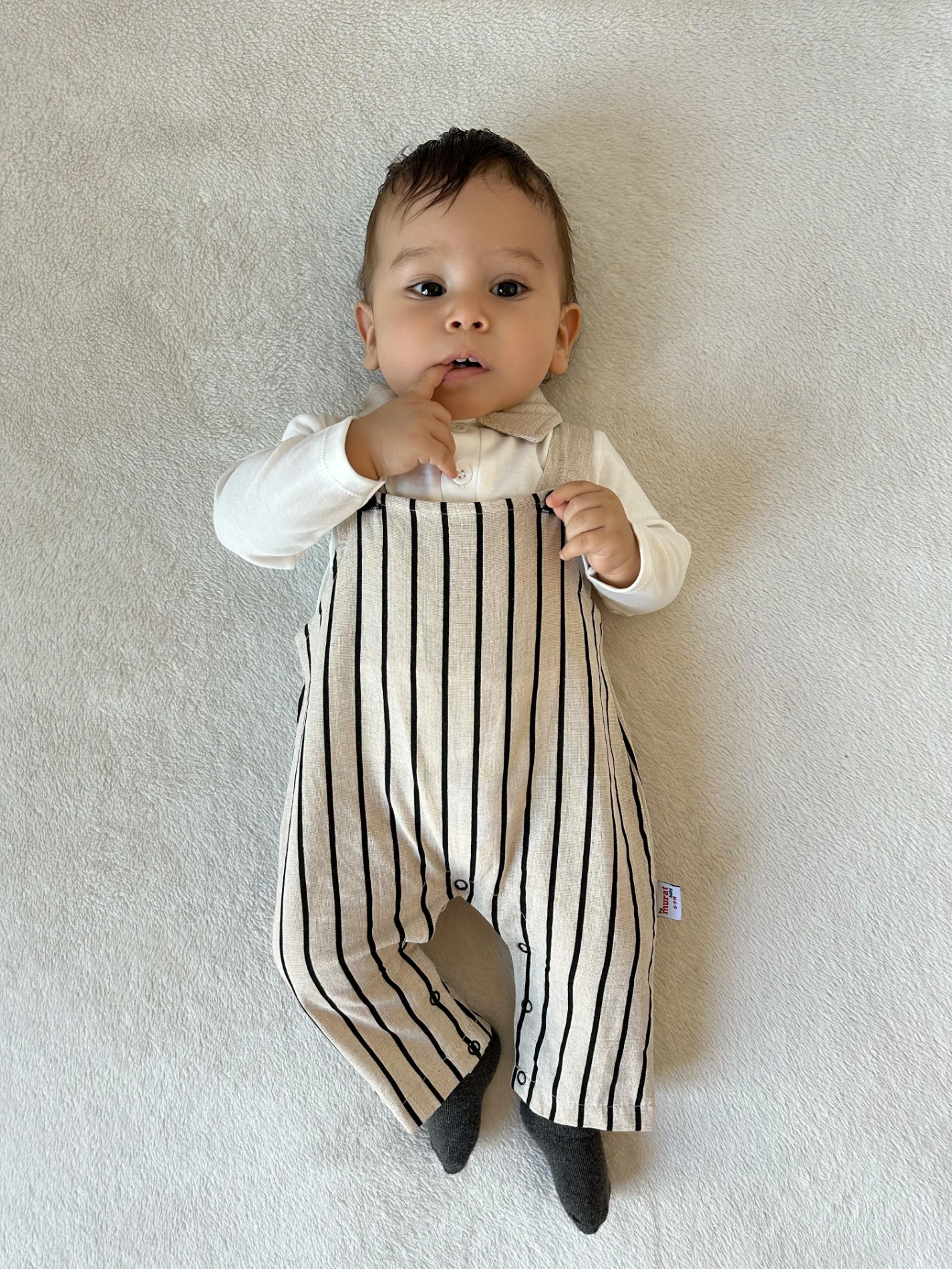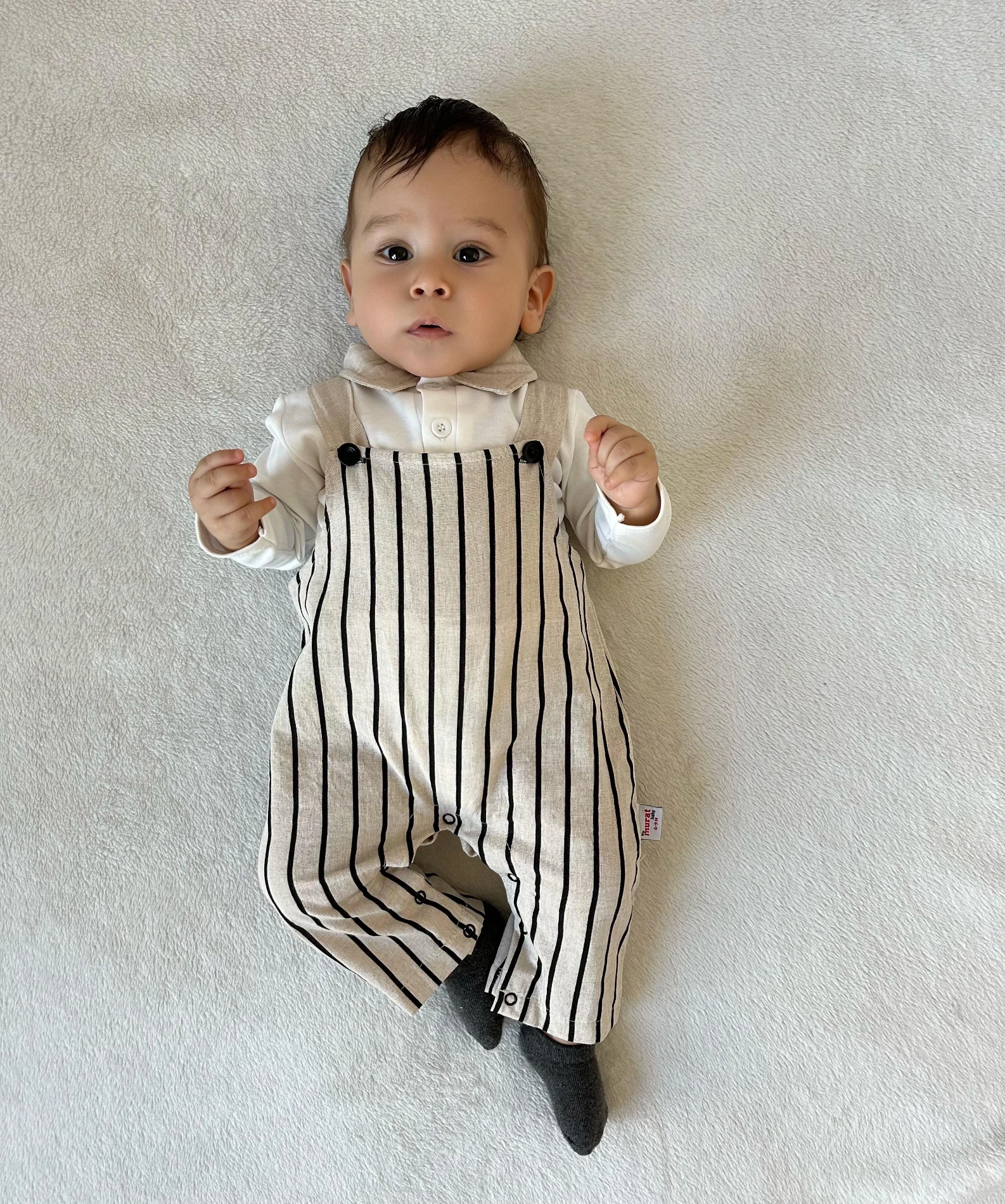 Cizgili salopet ve body takımı