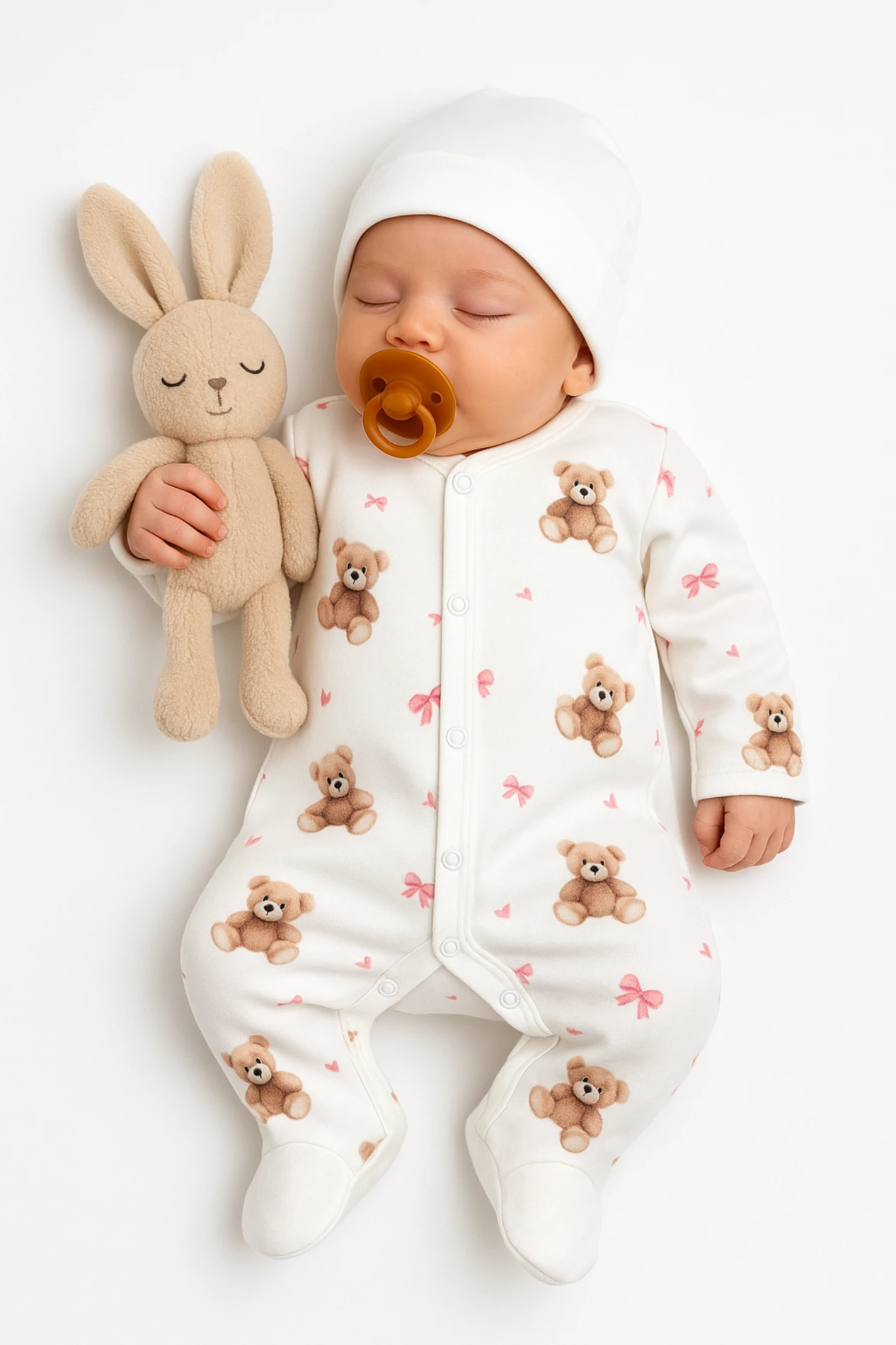 Fiyonk ve ayıcık desenli mevsimlik tulum ( şapkası dahil değildir)
